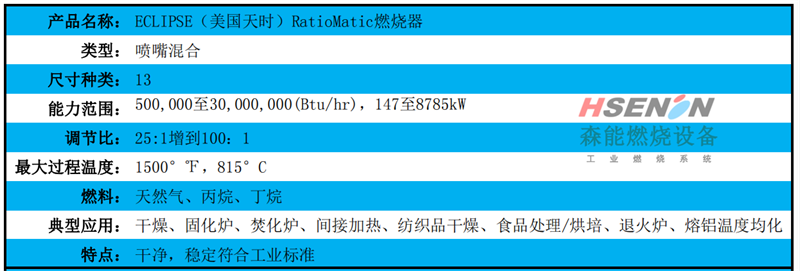 Eclipse RM 系列 熱風(fēng)燃燒器 最適合爐膛內(nèi)正壓或壓力變化較大的工業(yè)過程,燃?xì)夂椭伎諝怆p比例調(diào)節(jié)能確保完全燃燒和高效節(jié)能!輸出功率調(diào)節(jié)比最大可達(dá) 100:1 ,可根據(jù)爐壁厚度選用適合的燃燒筒長度。